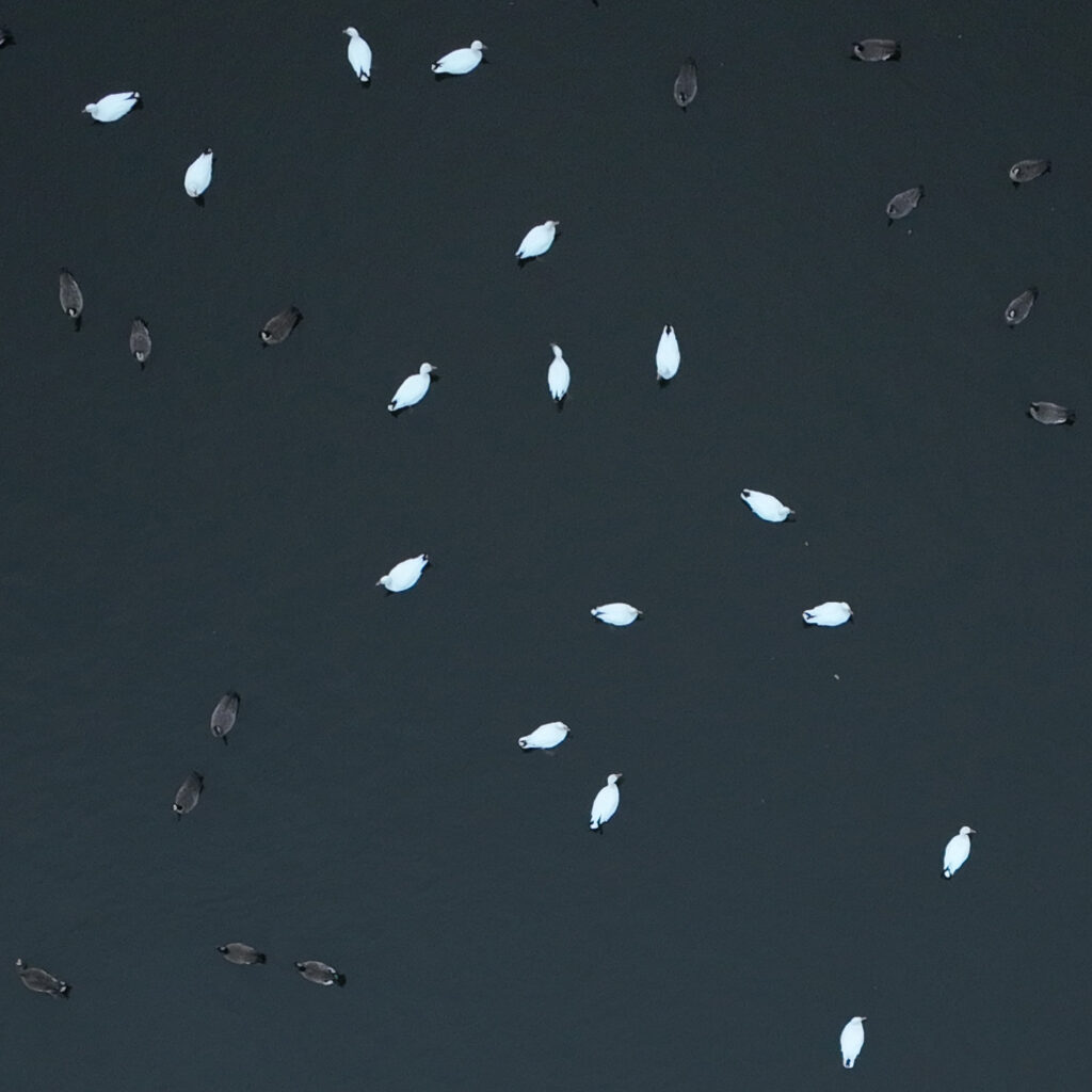 - 図5.高度25mで撮影した三日月沼のハクガンとシジュウカラガン。