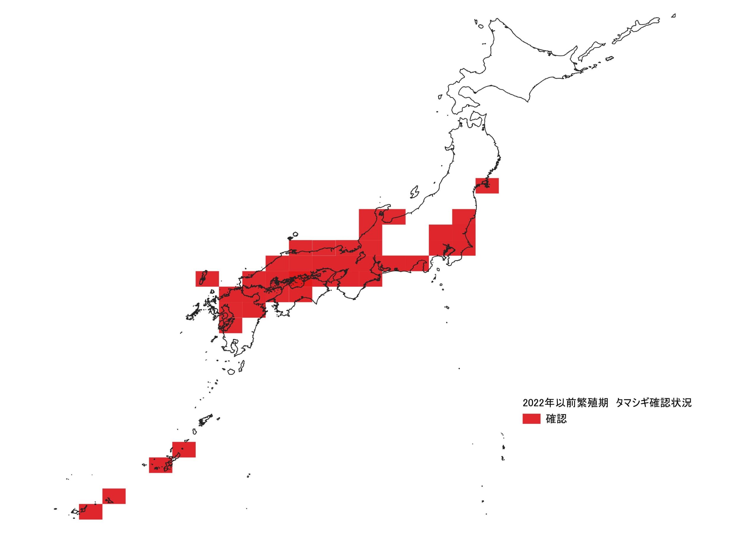 タマシギは、草むらに隠れていることが多く、見つけにくい鳥ですが、繁殖期の夜間によく鳴きます。その習性を利用し、2023年から繁殖期(4〜9月)の鳴き声調査を提案して、約40名の協力者から2025年までに約350件の情報提供をいただきました。ありがとうございました。調査の方法はシンプルで、あらかじめ決めた地点に行き、日没後に一定時間(例:6分)滞在して鳴き声を聞きとる設計になっています。得られた位置情報は、タマシギの保護のために「詳細位置は公開しない」方針に従って一次メッシュ(約80km四方)という大きな区切りで整理し、調査で鳴き声が得られたメッシュ/得られなかったメッシュに分けました。同時に、公開されている記録(鳥類繁殖分布調査、バードノート、eBirdなど)や、Web(ブログ・SNSなど)から、2023~2025年の繁殖期に市町村レベルで「時期と場所が特定できる」写真記録を抽出し、調査結果と統合し直近の結果としてまとめました。さらに2000〜2022年の繁殖期のタマシギ情報も同様に整理しました。図1に2022年より前のまとめを、図2に2023~2025年のまとめを示しました。図1と図2の差は、必ずしも「本当の分布変化」だけを意味しておらず、調査回数や実施時間、記録サイトの普及、位置情報の精度なども結果に影響しています。整理した結果、内陸部(例:信州地域)、日本海側、東北の北限域など、過去は確認されたが近年空白になっているメッシュを「検証優先枠」とし、調査の抜け(ギャップ)を埋めていく必要があることが分かりました。