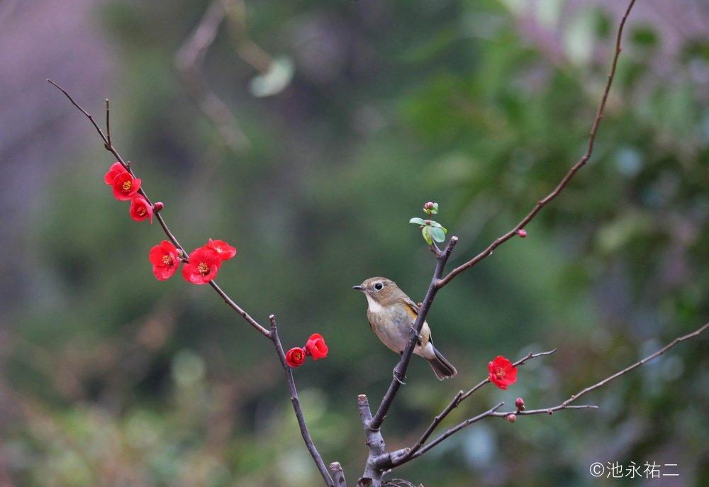○優秀作品:「庭のボケにルリビタキ」(ルリビタキ)池永祐二様